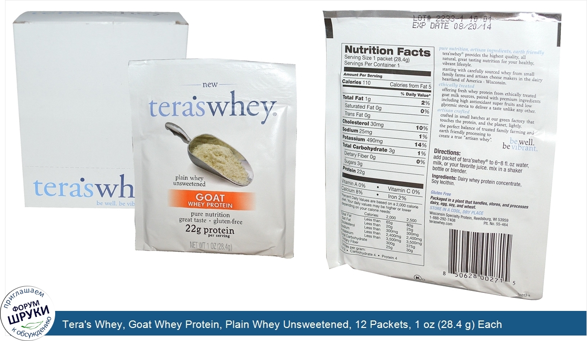 Друзья, если у вас есть отзыв/дополнение/комментарий/вопрос относительно Tera's Whey, Goat Whey Protein, Plain Whey Unsweetened, 12 Packets, 1 oz (28.4 g) Each - напишите его ответом в эту тему (это будет полезно всему сообществу в целом и вам в отдельности).