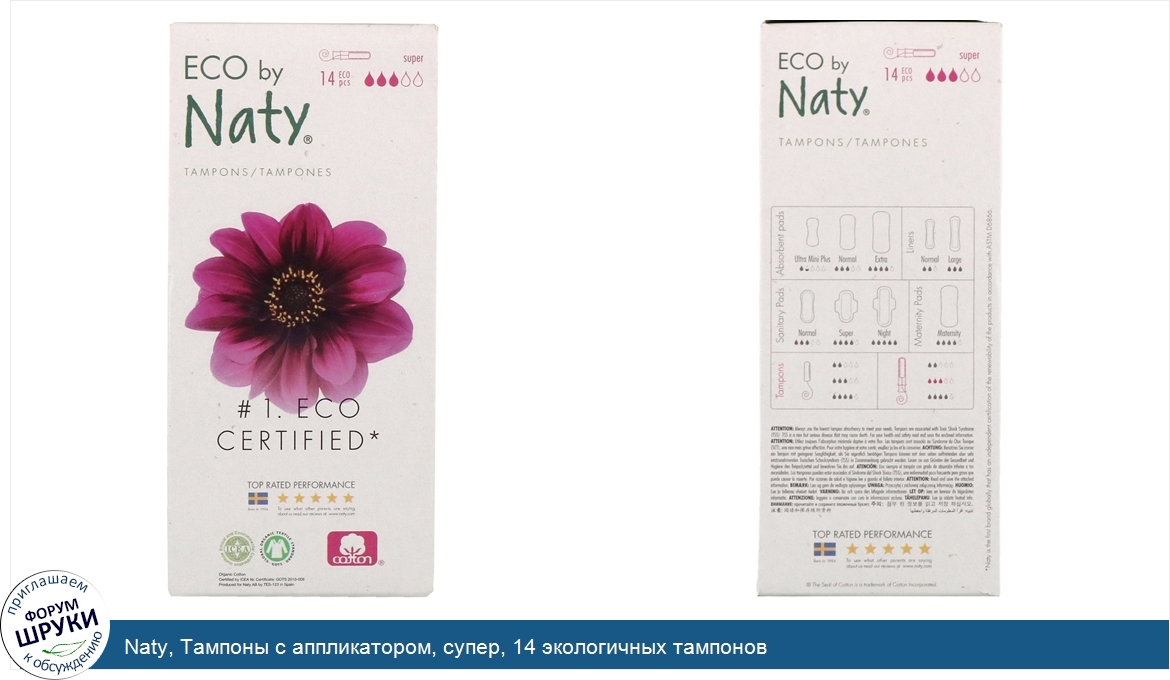 Друзья, если у вас есть отзыв/дополнение/комментарий/вопрос относительно Naty, Тампоны с аппликатором, супер, 14 экологичных тампонов - напишите его ответом в эту тему (это будет полезно всему сообществу в целом и вам в отдельности).