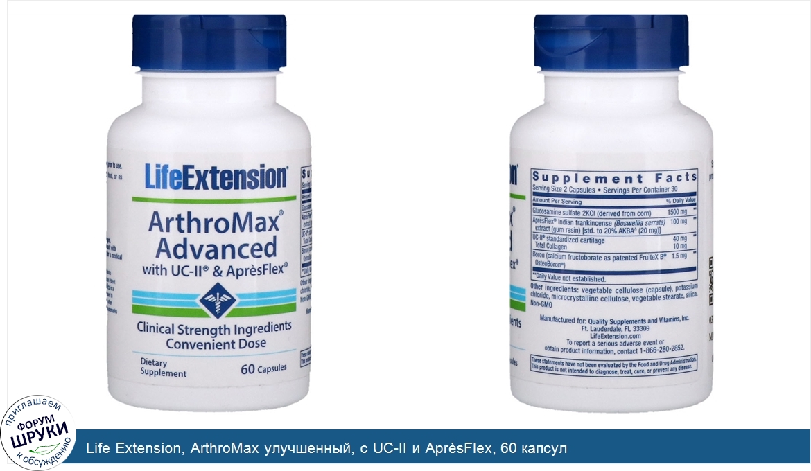 Life Extension, ArthroMax улучшенный, с UC-II и AprèsFlex, 60 капсул