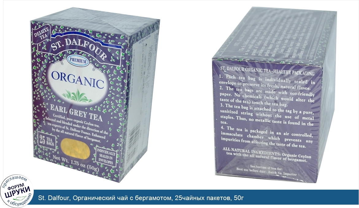 ru St. Dalfour, Органический чай с бергамотом, 25чайных пакетов, 50г
