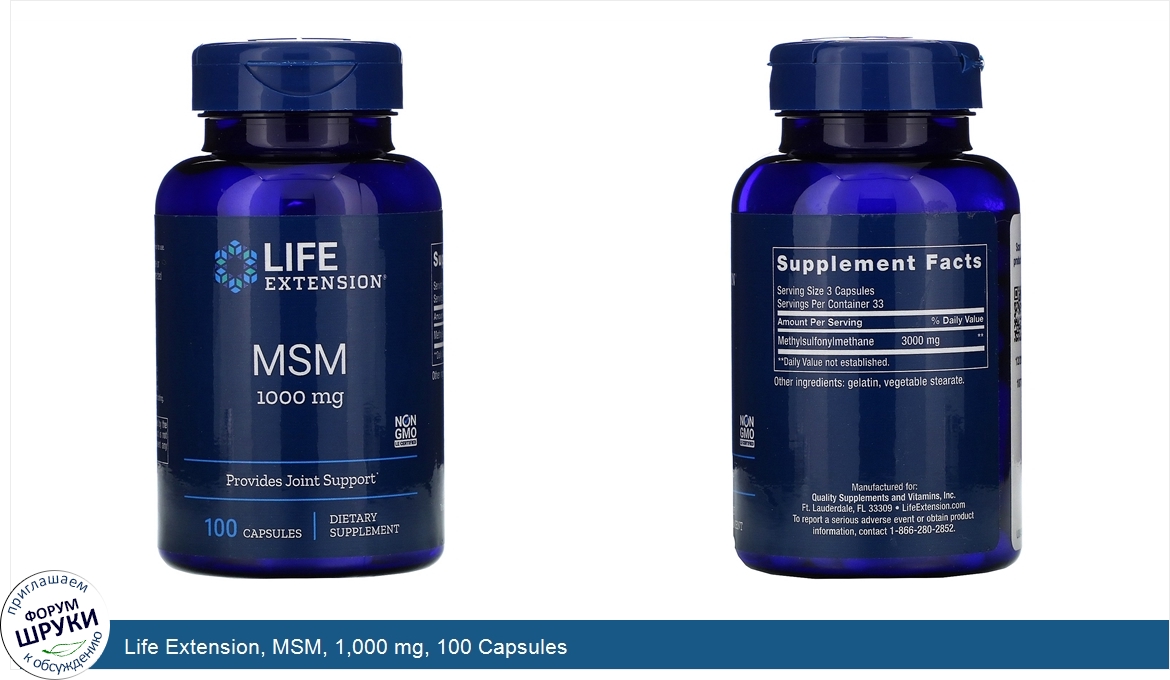 Life Extension, MSM, 1,000 mg, 100 Capsules