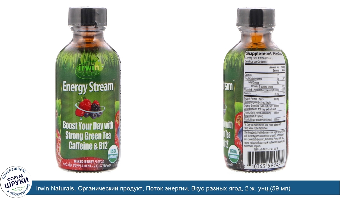 Irwin Naturals, Органический продукт, Поток энергии, Вкус разных ягод, 2 ж. унц.(59 мл)