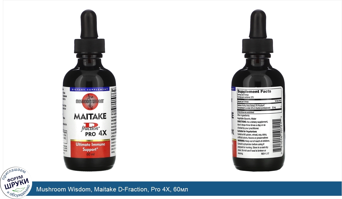 Друзья, если у вас есть отзыв/дополнение/комментарий/вопрос относительно Mushroom Wisdom, Maitake D-Fraction, Pro 4X, 60мл - напишите его ответом в эту тему (это будет полезно всему сообществу в целом и вам в отдельности).