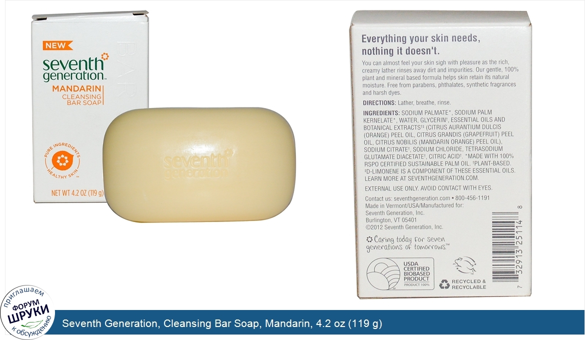 Друзья, если у вас есть отзыв/дополнение/комментарий/вопрос относительно Seventh Generation, Cleansing Bar Soap, Mandarin, 4.2 oz (119 g) - напишите его ответом в эту тему (это будет полезно всему сообществу в целом и вам в отдельности).