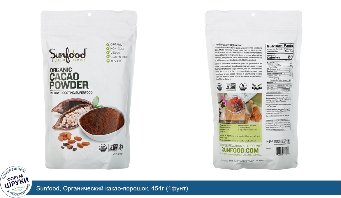 Друзья, если у вас есть отзыв/дополнение/комментарий/вопрос относительно Sunfood, Органический какао-порошок, 454г (1фунт) - напишите его ответом в эту тему (это будет полезно всему сообществу в целом и вам в отдельности).