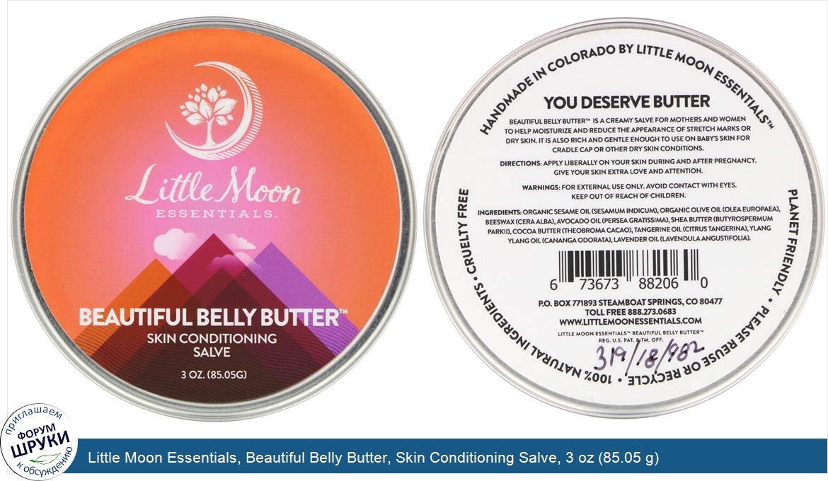Little Moon Essentials, Beautiful Belly Butter, Skin Conditioning Salve, 3 oz (85.05 g)