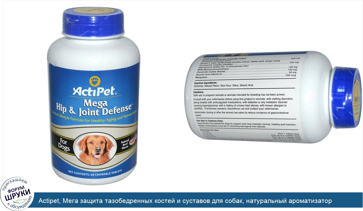 ru Actipet, Мега защита тазобедренных костей и суставов для собак, натуральный ароматизатор говядины, 60 жевательных таблеток
