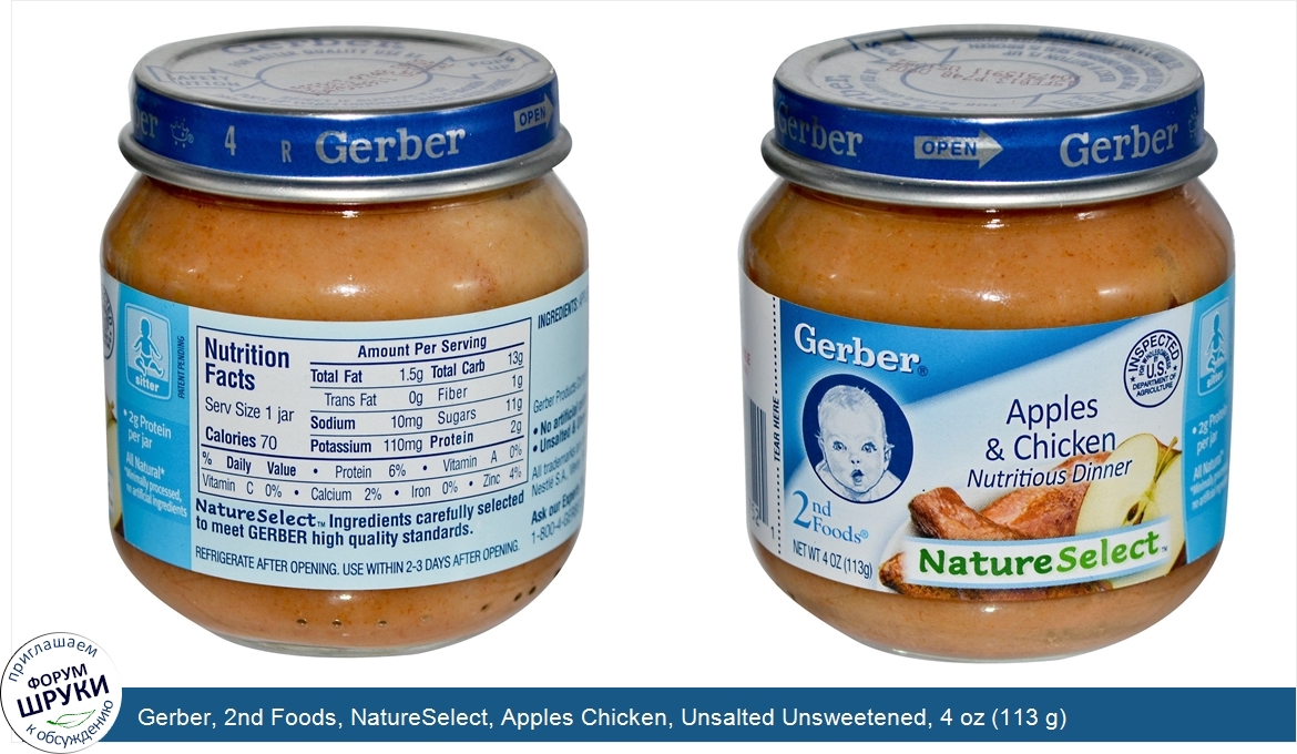 Gerber, 2nd Foods, NatureSelect, Apples Chicken, Unsalted Unsweetened, 4 oz (113 g)