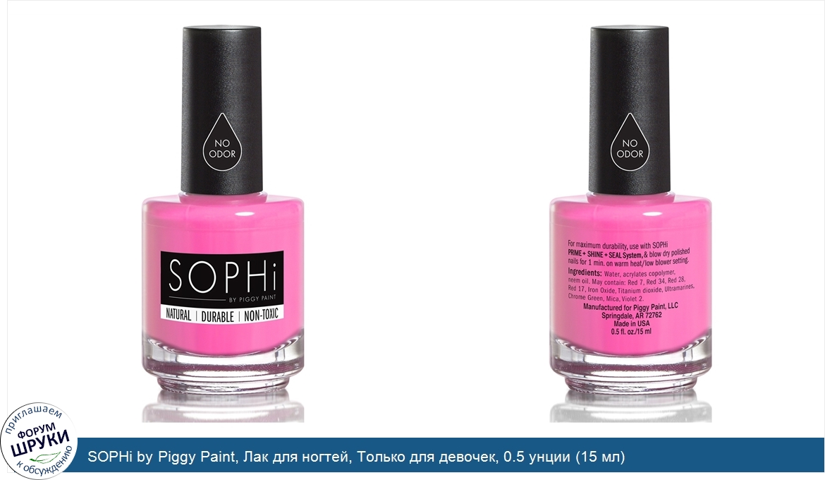Друзья, если у вас есть отзыв/дополнение/комментарий/вопрос относительно SOPHi by Piggy Paint, Лак для ногтей, Только для девочек, 0.5 унции (15 мл) - напишите его ответом в эту тему (это будет полезно всему сообществу в целом и вам в отдельности).