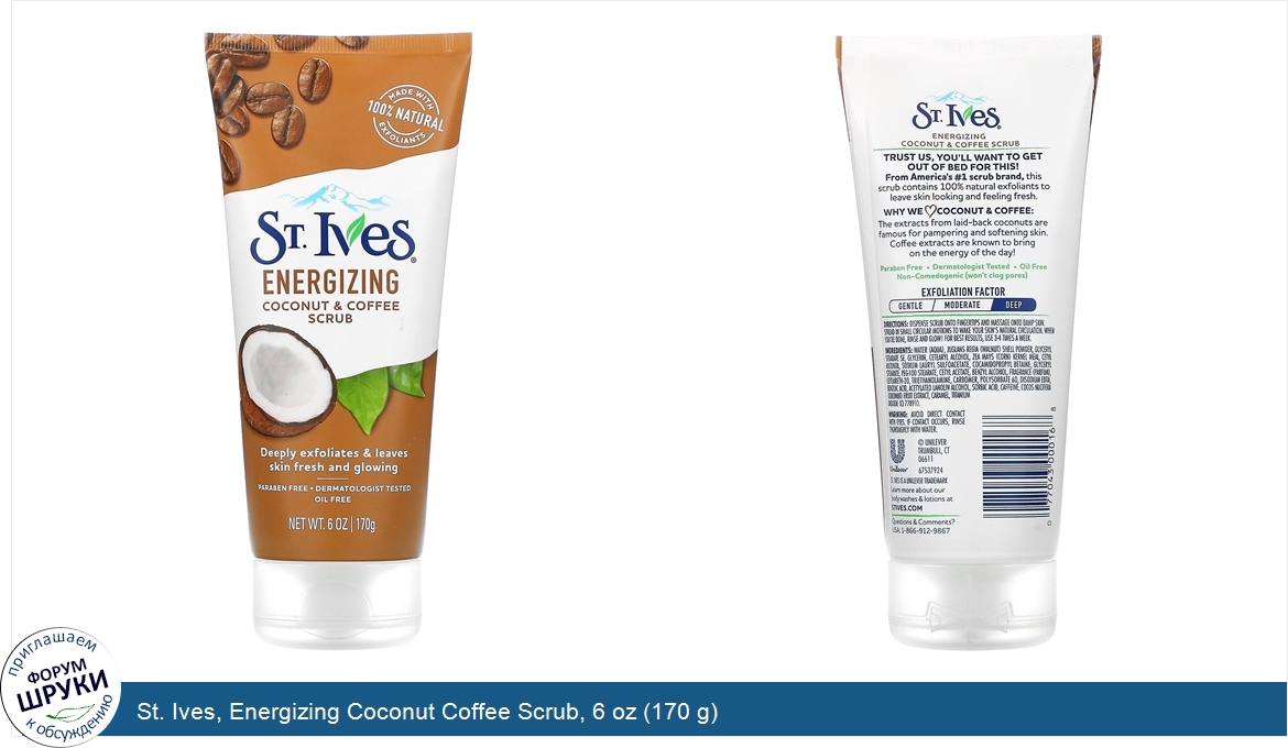 Друзья, если у вас есть отзыв/дополнение/комментарий/вопрос относительно St. Ives, Energizing Coconut Coffee Scrub, 6 oz (170 g) - напишите его ответом в эту тему (это будет полезно всему сообществу в целом и вам в отдельности).
