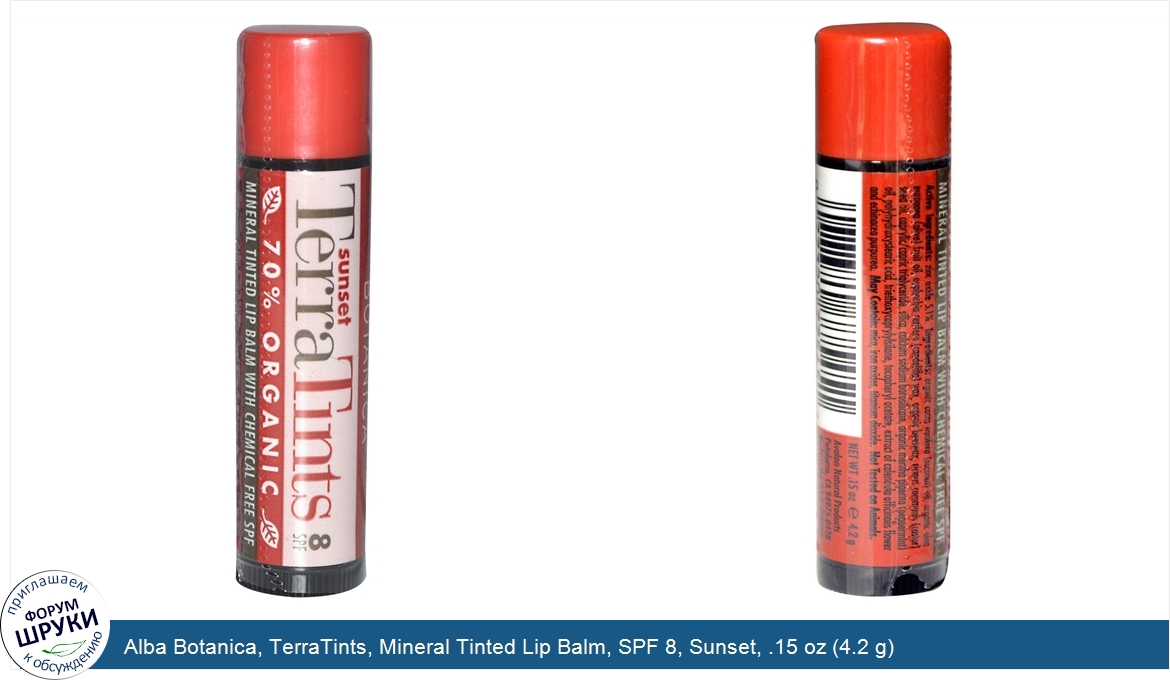 Друзья, если у вас есть отзыв/дополнение/комментарий/вопрос относительно Alba Botanica, TerraTints, Mineral Tinted Lip Balm, SPF 8, Sunset, .15 oz (4.2 g) - напишите его ответом в эту тему (это будет полезно всему сообществу в целом и вам в отдельности).