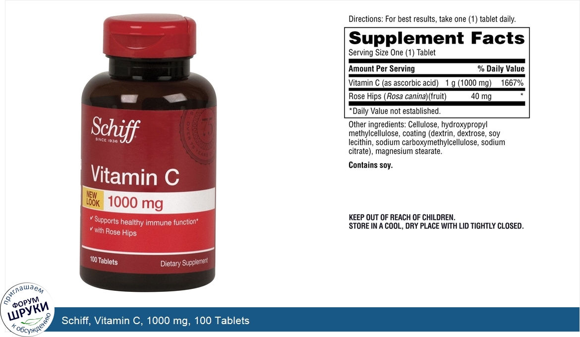 Друзья, если у вас есть отзыв/дополнение/комментарий/вопрос относительно Schiff, Vitamin C, 1000 mg, 100 Tablets - напишите его ответом в эту тему (это будет полезно всему сообществу в целом и вам в отдельности).