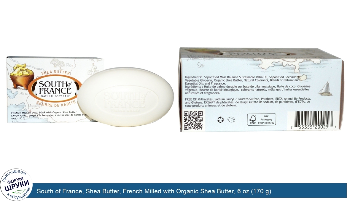 South of France, Shea Butter, French Milled with Organic Shea Butter, 6 oz (170 g)