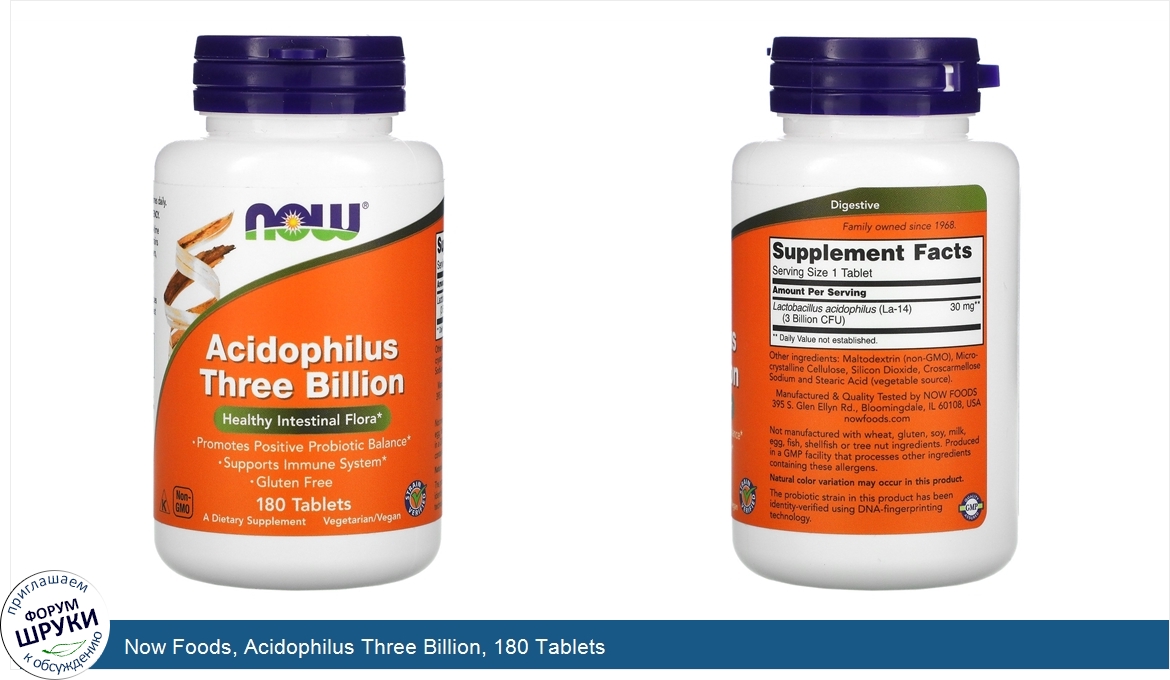 Друзья, если у вас есть отзыв/дополнение/комментарий/вопрос относительно Now Foods, Acidophilus Three Billion, 180 Tablets - напишите его ответом в эту тему (это будет полезно всему сообществу в целом и вам в отдельности).