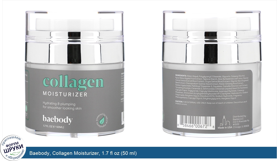 Друзья, если у вас есть отзыв/дополнение/комментарий/вопрос относительно Baebody, Collagen Moisturizer, 1.7 fl oz (50 ml) - напишите его ответом в эту тему (это будет полезно всему сообществу в целом и вам в отдельности).