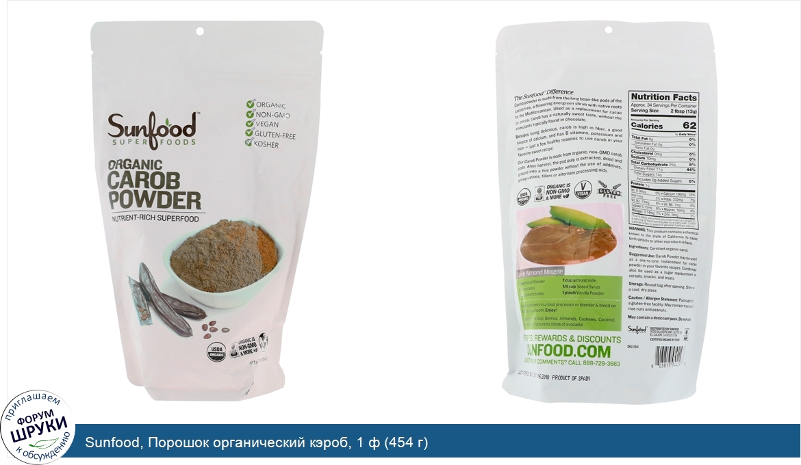 Друзья, если у вас есть отзыв/дополнение/комментарий/вопрос относительно Sunfood, Порошок органический кэроб, 1 ф (454 г) - напишите его ответом в эту тему (это будет полезно всему сообществу в целом и вам в отдельности).