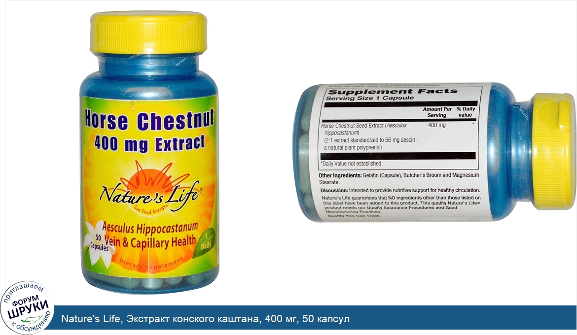 Друзья, если у вас есть отзыв/дополнение/комментарий/вопрос относительно Nature's Life, Экстракт конского каштана, 400 мг, 50 капсул - напишите его ответом в эту тему (это будет полезно всему сообществу в целом и вам в отдельности).