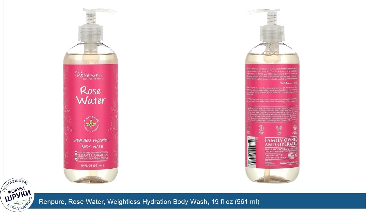 Renpure, Rose Water, Weightless Hydration Body Wash, 19 fl oz (561 ml)