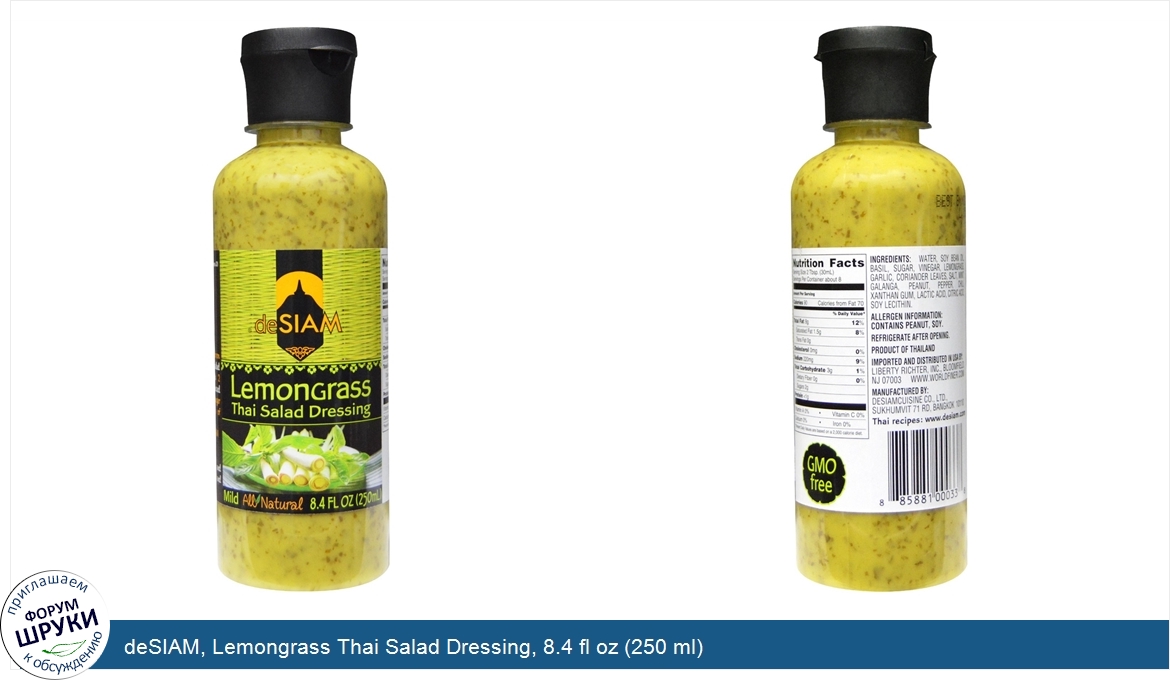 Друзья, если у вас есть отзыв/дополнение/комментарий/вопрос относительно deSIAM, Lemongrass Thai Salad Dressing, 8.4 fl oz (250 ml) - напишите его ответом в эту тему (это будет полезно всему сообществу в целом и вам в отдельности).