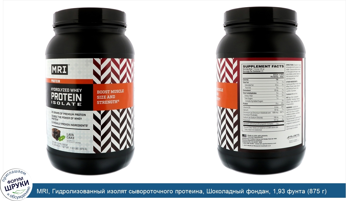 [DESCRIPT]Boost Muscle Size and Strength§. 25 grams of Premium Protein. Double the Power of Whey Protein^. Clinically Proven Ingredients. Naturally Artificially Flavored. Dietary Supplement. 25 Servings. Protein is essential for building muscle. However, not all protein supplements are made equal. MRI Hydrolyzed Whey Protein Isolate is the solution for maximum muscle-building power. It is a post-workout supplement formulated with premium ingredients that work together to enhance amino acid uptake and support quicker muscle recovery. Whey protein is known to be more effective at building muscle than casein or vegetable proteins. Hydrolyzed Whey Protein Isolate is a highly concentrated and partially broken-down form of whey protein. This means less sugar, less cholesterol, and less lactose but more muscle protein synthesis. The hydrolyzed form allows protein to get rapidly digested and absorbed in the body to help repair and ultimately, build more muscle. ^Velositol is a patented, breakthrough ingredient clinically proven to significantly increase muscle protein synthesis. When added to whey protein, Velositol improves essential amino acid uptake which is key for quicker muscle recovery. In fact, a study shows that Velositol doubles the power of protein to support enhanced muscle growth versus whey protein alone. ‡. §Boost muscle size and strength by taking a scoop of Hydrolyzed Whey Protein Isolate within a hour after exercise. ‡Based on a study using 6 g of whey protein.[/DESCRIPT]... (описание дополняется)
