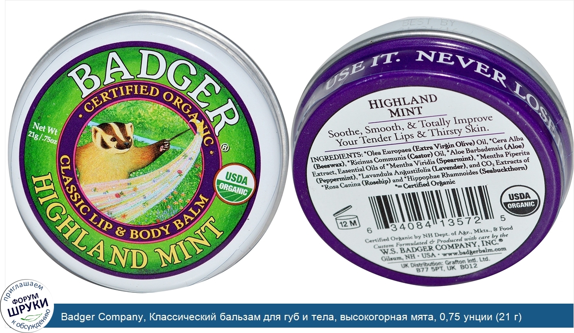 Друзья, если у вас есть отзыв/дополнение/комментарий/вопрос относительно Badger Company, Классический бальзам для губ и тела, высокогорная мята, 0,75 унции (21 г) - напишите его ответом в эту тему (это будет полезно всему сообществу в целом и вам в отдельности).