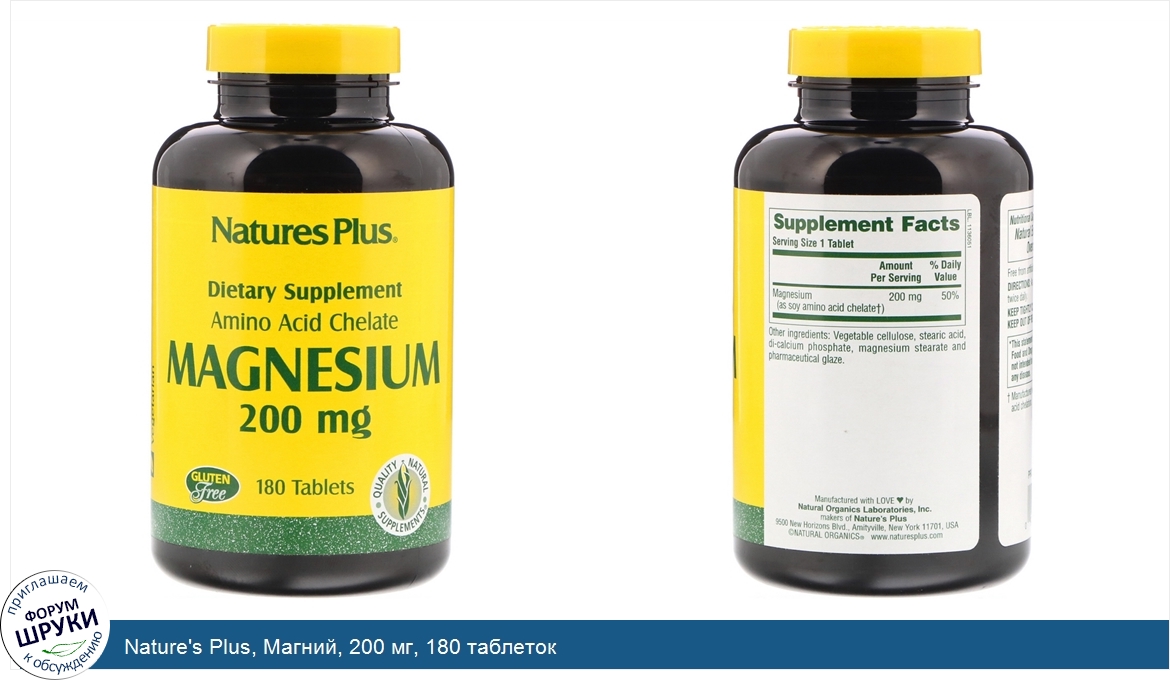 Nature's Plus, Магний, 200 мг, 180 таблеток