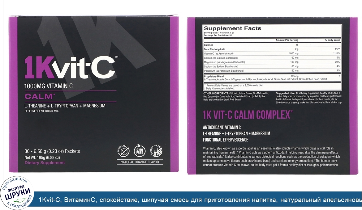 Друзья, если у вас есть отзыв/дополнение/комментарий/вопрос относительно 1Kvit-C, ВитаминC, спокойствие, шипучая смесь для приготовления напитка, натуральный апельсиновый вкус, 1000мг, 30пакетиков по 6,5г (0,23унции) - напишите его ответом в эту тему (это будет полезно всему сообществу в целом и вам в отдельности).