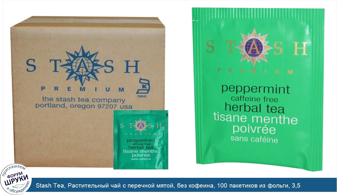 Stash Tea, Растительный чай с перечной мятой, без кофеина, 100 пакетиков из фольги, 3,5 унции (100 г)