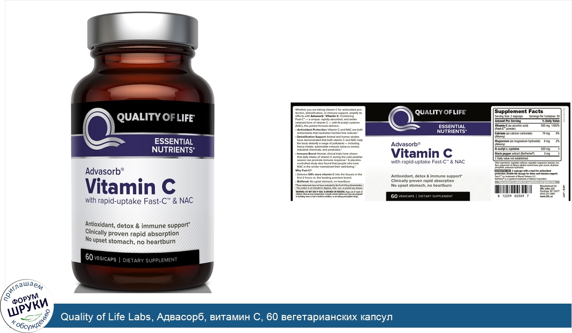 Друзья, если у вас есть отзыв/дополнение/комментарий/вопрос относительно Quality of Life Labs, Адвасорб, витамин С, 60 вегетарианских капсул - напишите его ответом в эту тему (это будет полезно всему сообществу в целом и вам в отдельности).