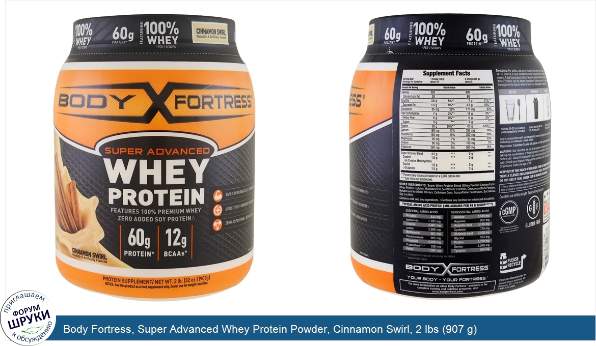 Друзья, если у вас есть отзыв/дополнение/комментарий/вопрос относительно Body Fortress, Super Advanced Whey Protein Powder, Cinnamon Swirl, 2 lbs (907 g) - напишите его ответом в эту тему (это будет полезно всему сообществу в целом и вам в отдельности).