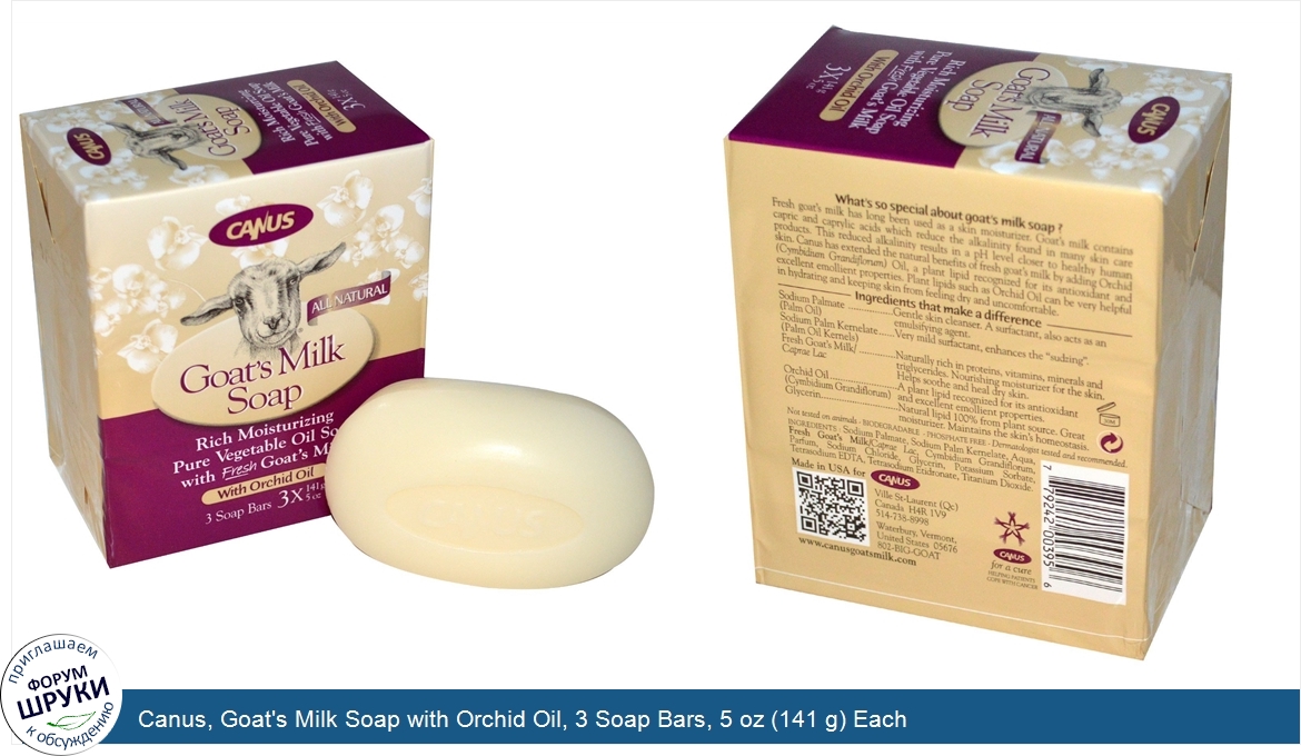 Друзья, если у вас есть отзыв/дополнение/комментарий/вопрос относительно Canus, Goat's Milk Soap with Orchid Oil, 3 Soap Bars, 5 oz (141 g) Each - напишите его ответом в эту тему (это будет полезно всему сообществу в целом и вам в отдельности).