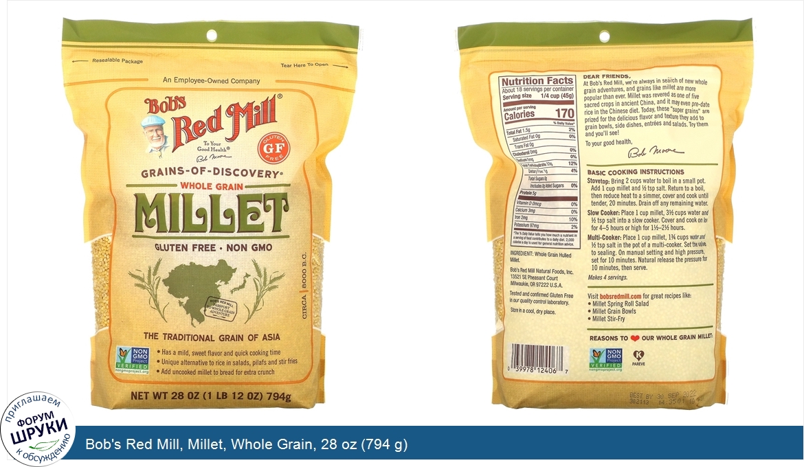 Друзья, если у вас есть отзыв/дополнение/комментарий/вопрос относительно Bob's Red Mill, Millet, Whole Grain, 28 oz (794 g) - напишите его ответом в эту тему (это будет полезно всему сообществу в целом и вам в отдельности).