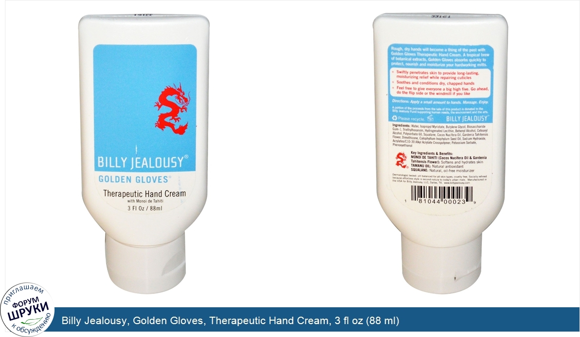 Billy Jealousy, Golden Gloves, Therapeutic Hand Cream, 3 fl oz (88 ml)