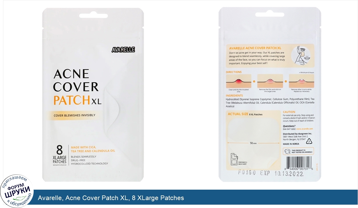 Друзья, если у вас есть отзыв/дополнение/комментарий/вопрос относительно Avarelle, Acne Cover Patch XL, 8 XLarge Patches - напишите его ответом в эту тему (это будет полезно всему сообществу в целом и вам в отдельности).