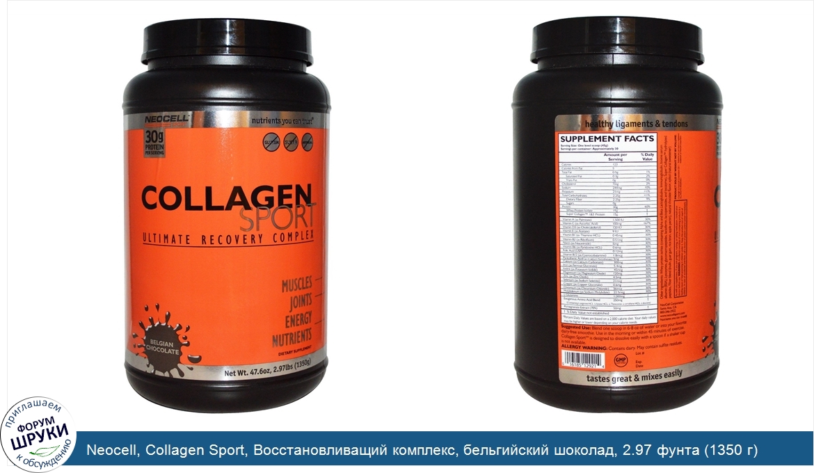 Друзья, если у вас есть отзыв/дополнение/комментарий/вопрос относительно Neocell, Collagen Sport, Восстановливащий комплекс, бельгийский шоколад, 2.97 фунта (1350 г) - напишите его ответом в эту тему (это будет полезно всему сообществу в целом и вам в отдельности).