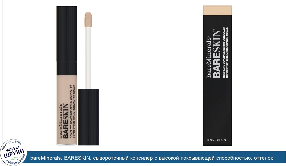 bareMinerals, BARESKIN, сывороточный консилер с высокой покрывающей способностью, оттенок «Светлый», 6мл