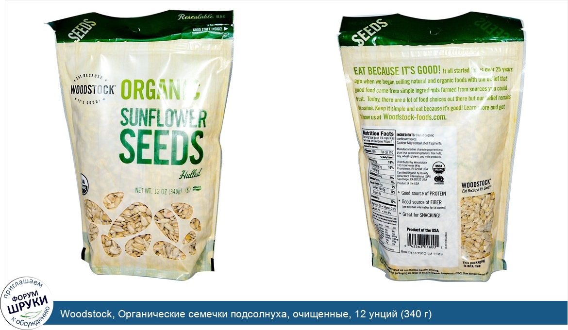 ru Woodstock, Органические семечки подсолнуха, очищенные, 12 унций (340 г)