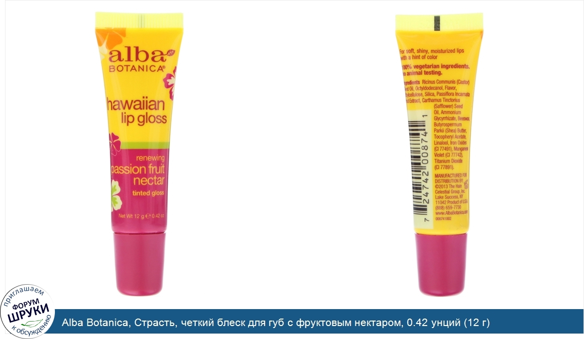 Друзья, если у вас есть отзыв/дополнение/комментарий/вопрос относительно Alba Botanica, Страсть, четкий блеск для губ с фруктовым нектаром, 0.42 унций (12 г) - напишите его ответом в эту тему (это будет полезно всему сообществу в целом и вам в отдельности).