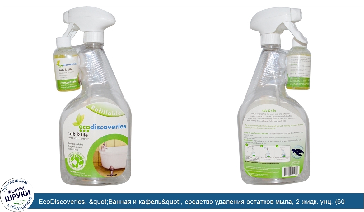 Друзья, если у вас есть отзыв/дополнение/комментарий/вопрос относительно EcoDiscoveries, &quot;Ванная и кафель&quot;, средство удаления остатков мыла, 2 жидк. унц. (60 мл) концентрат с 1 флаконом-распылителем - напишите его ответом в эту тему (это будет полезно всему сообществу в целом и вам в отдельности).