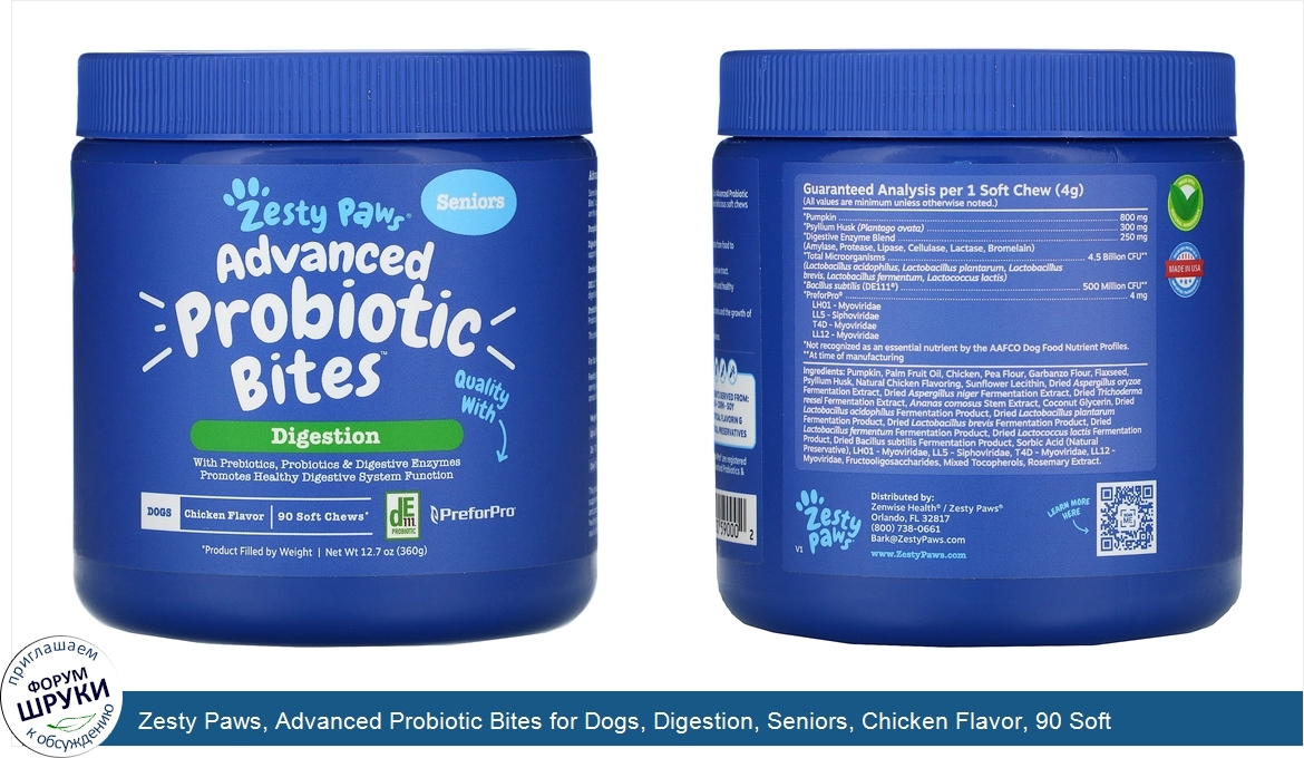 Друзья, если у вас есть отзыв/дополнение/комментарий/вопрос относительно Zesty Paws, Advanced Probiotic Bites for Dogs, Digestion, Seniors, Chicken Flavor, 90 Soft Chews, 12.7 oz (360 g) - напишите его ответом в эту тему (это будет полезно всему сообществу в целом и вам в отдельности).