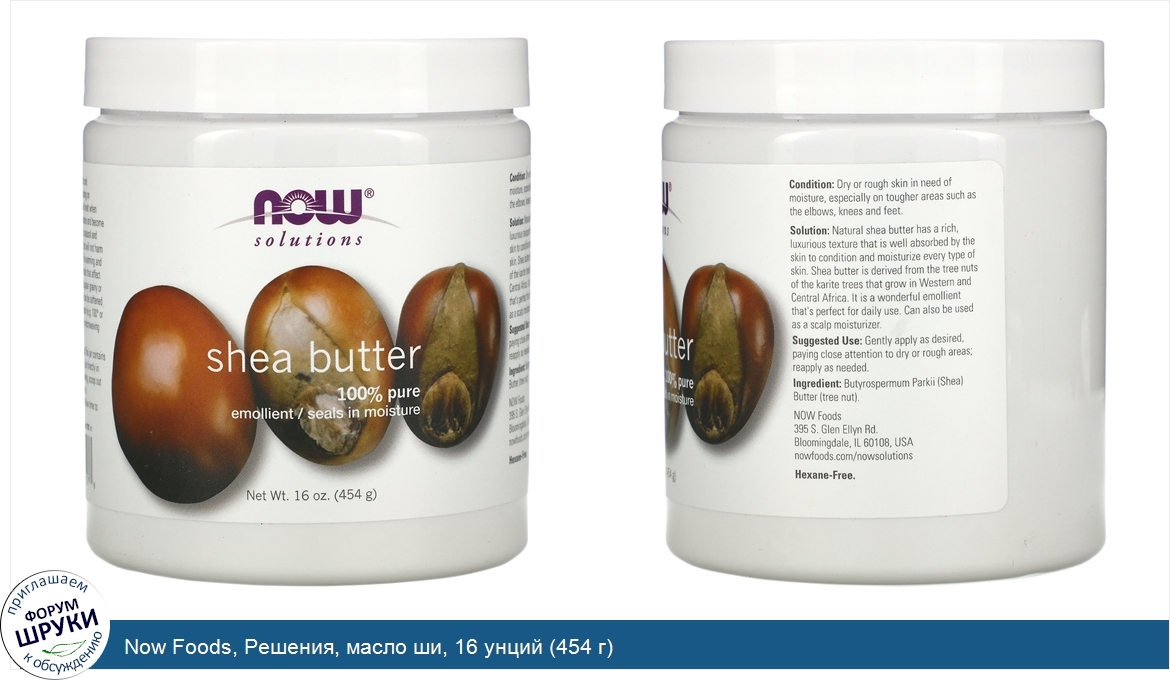Друзья, если у вас есть отзыв/дополнение/комментарий/вопрос относительно Now Foods, Решения, масло ши, 16 унций (454 г) - напишите его ответом в эту тему (это будет полезно всему сообществу в целом и вам в отдельности).