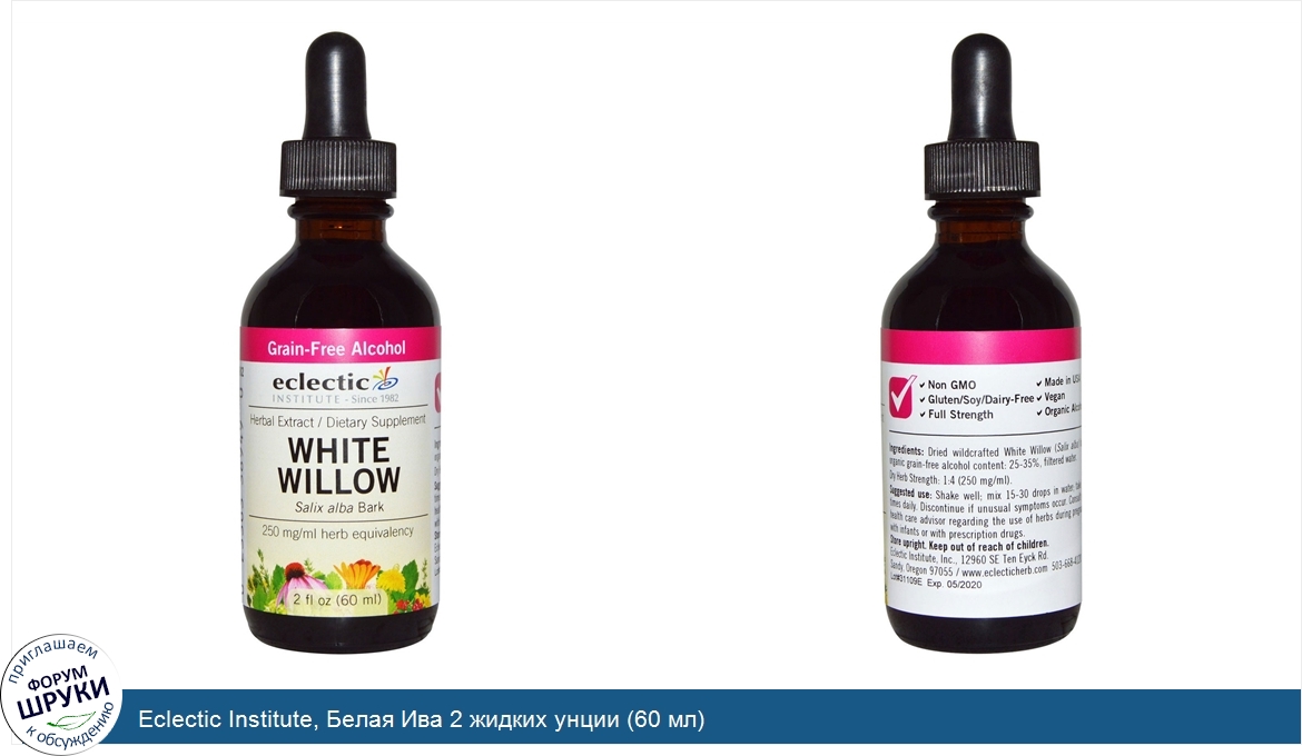 Друзья, если у вас есть отзыв/дополнение/комментарий/вопрос относительно Eclectic Institute, Белая Ива 2 жидких унции (60 мл) - напишите его ответом в эту тему (это будет полезно всему сообществу в целом и вам в отдельности).