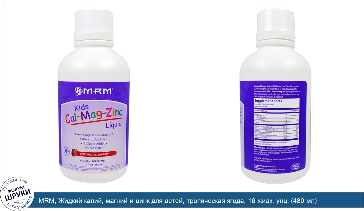 Друзья, если у вас есть отзыв/дополнение/комментарий/вопрос относительно MRM, Жидкий калий, магний и цинк для детей, тропическая ягода, 16 жидк. унц. (480 мл) - напишите его ответом в эту тему (это будет полезно всему сообществу в целом и вам в отдельности).
