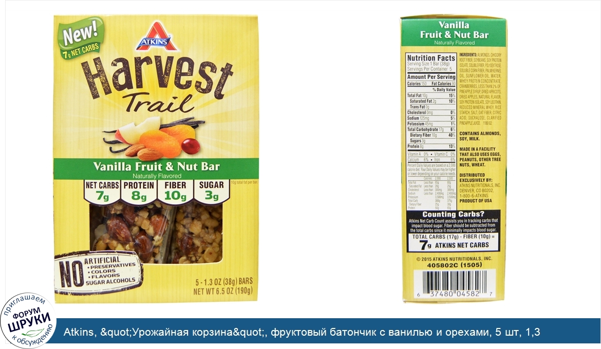 Друзья, если у вас есть отзыв/дополнение/комментарий/вопрос относительно Atkins, &quot;Урожайная корзина&quot;, фруктовый батончик с ванилью и орехами, 5 шт, 1,3 унции (38 г) каждый - напишите его ответом в эту тему (это будет полезно всему сообществу в целом и вам в отдельности).