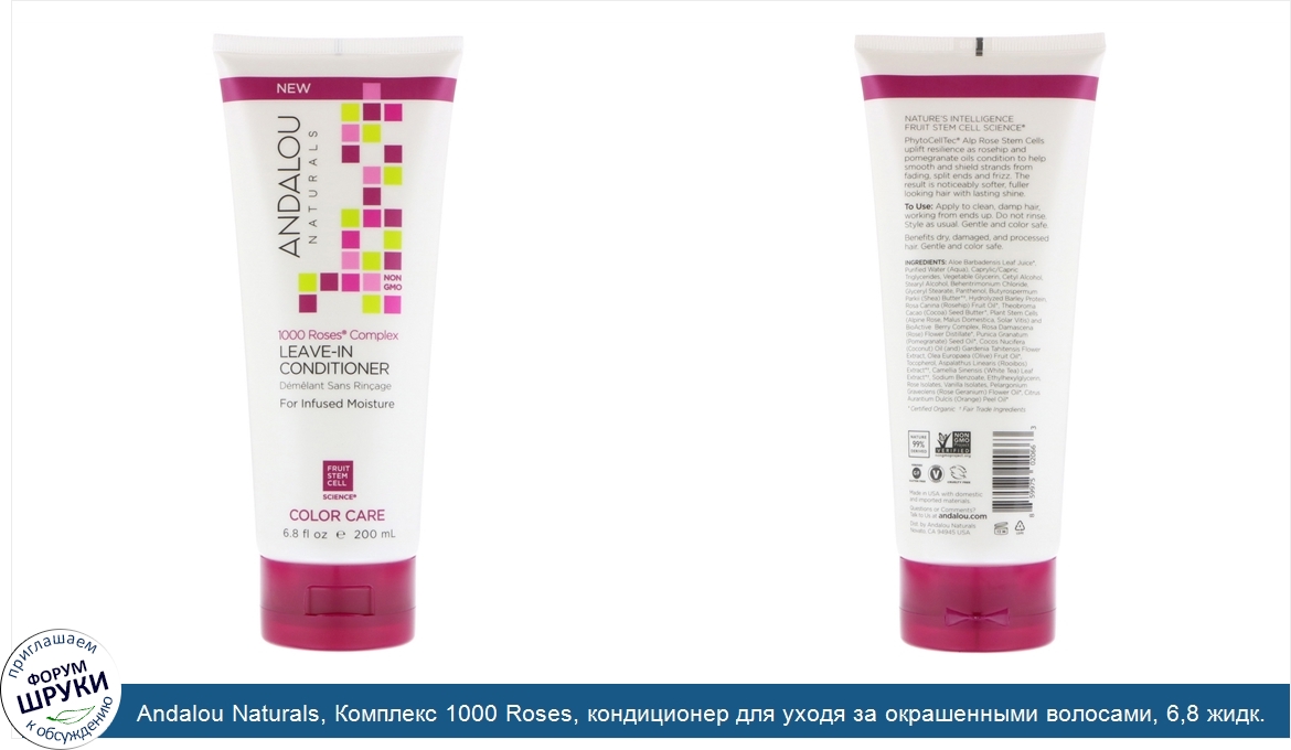 Друзья, если у вас есть отзыв/дополнение/комментарий/вопрос относительно Andalou Naturals, Комплекс 1000 Roses, кондиционер для уходя за окрашенными волосами, 6,8 жидк. унций (200 мл) - напишите его ответом в эту тему (это будет полезно всему сообществу в целом и вам в отдельности).