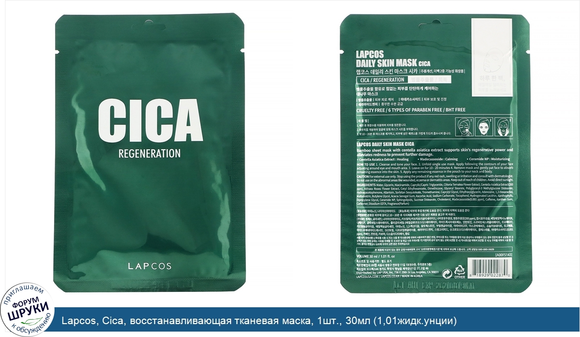 Друзья, если у вас есть отзыв/дополнение/комментарий/вопрос относительно Lapcos, Cica, восстанавливающая тканевая маска, 1шт., 30мл (1,01жидк.унции) - напишите его ответом в эту тему (это будет полезно всему сообществу в целом и вам в отдельности).