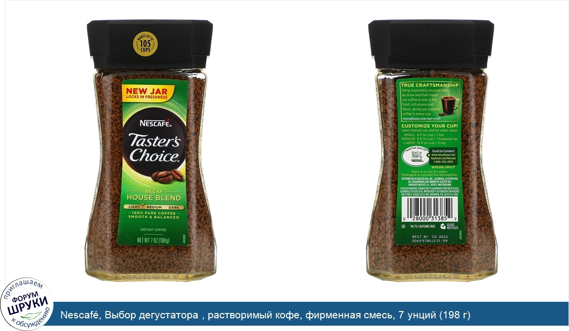 Друзья, если у вас есть отзыв/дополнение/комментарий/вопрос относительно Nescafé, Выбор дегустатора , растворимый кофе, фирменная смесь, 7 унций (198 г) - напишите его ответом в эту тему (это будет полезно всему сообществу в целом и вам в отдельности).