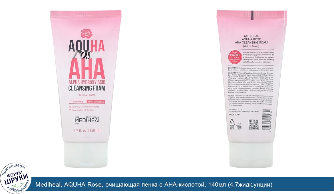 Mediheal, AQUHA Rose, очищающая пенка с AHA-кислотой, 140мл (4,7жидк.унции)