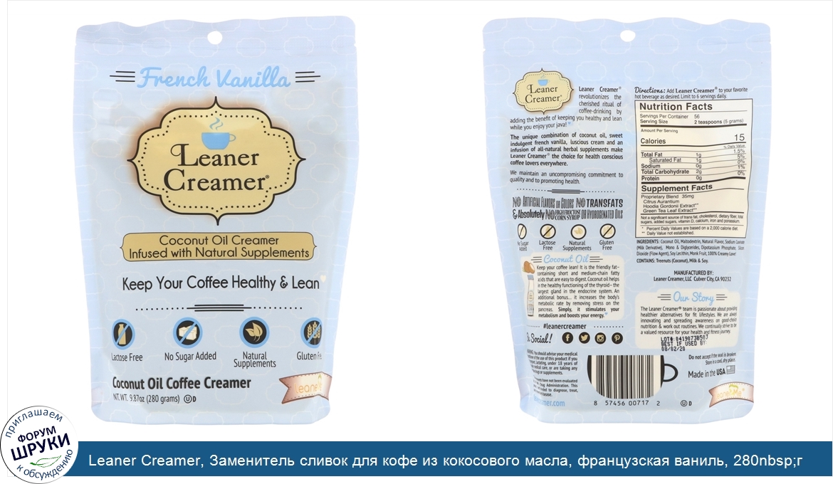 Друзья, если у вас есть отзыв/дополнение/комментарий/вопрос относительно Leaner Creamer, Заменитель сливок для кофе из кокосового масла, французская ваниль, 280nbsp;г - напишите его ответом в эту тему (это будет полезно всему сообществу в целом и вам в отдельности).