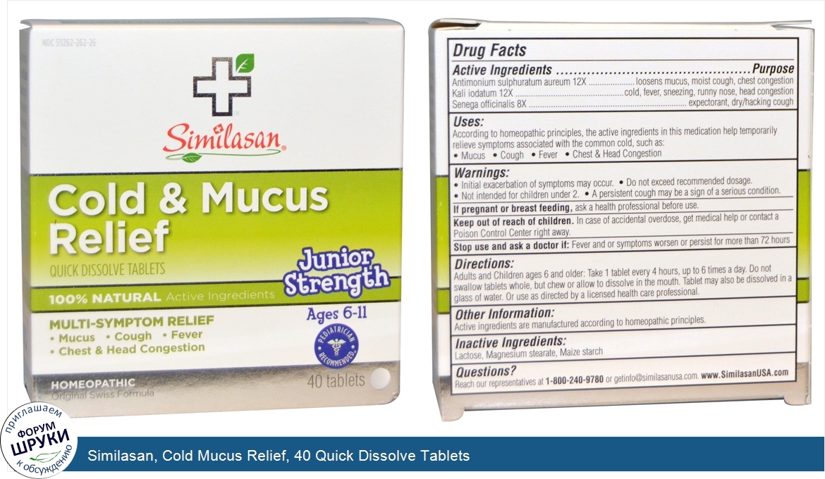 Друзья, если у вас есть отзыв/дополнение/комментарий/вопрос относительно Similasan, Cold Mucus Relief, 40 Quick Dissolve Tablets - напишите его ответом в эту тему (это будет полезно всему сообществу в целом и вам в отдельности).